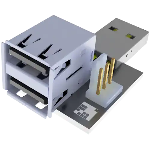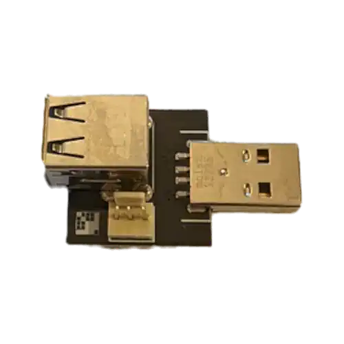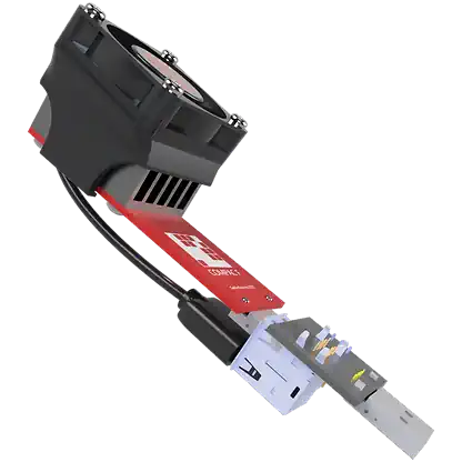 The GekkoScience USB Power Tap is a passive USB device that allows an external fan to be powered via the front USB port or the 3 pin JST connector. The back USB port allows full power and data pass-through.