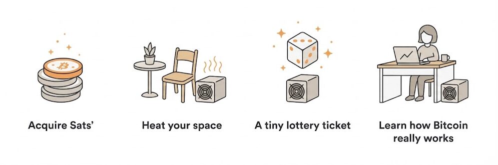 Whether you want a tiny desk miner (like 'Mein Coffee' as shown) or mining heater that earns its keep, or a full self-hosted solo setup, home mining is now genuinely accessible — and it’s one of the most direct ways to support Bitcoin’s decentralisation from your own home.